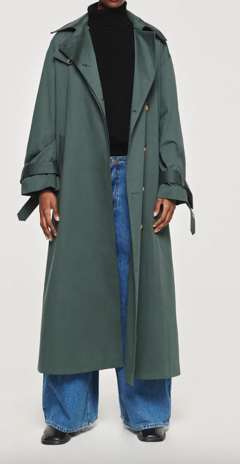 I am not the biggest fan nor user (too light for when it’s cold, too heavy for when it’s actually warm), but I constantly see all the girlies here in England wearing them, and they look super cool. The coat MUST be oversized, I prefer them in grey or green. Some options