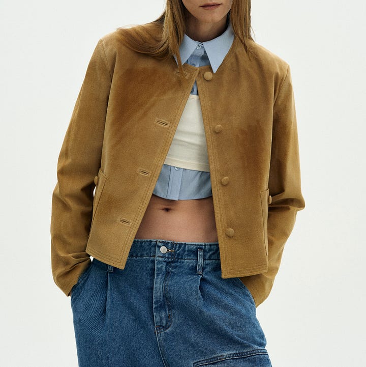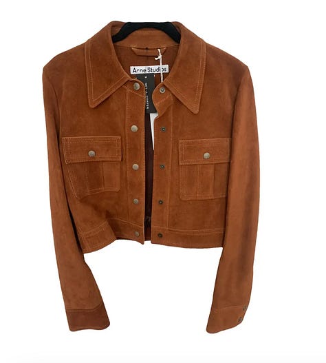 Also, I am telling you, suede jackets will be back very soon! I am on the hunt for the perfect suede short jacket. In genuine leather, the price goes easily and quickly up to 1000£, but I believe a lot can be found in the second hand market or on Etsy. A shortlist below!